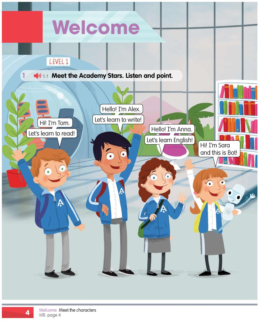 Ngay từ những trang đầu, Sách Academy Stars Pupil’s Book 1 PDF đã thể hiện rõ tính hệ thống và tính sư phạm cao, nổi bật với hình ảnh minh họa tinh tế, câu chuyện giàu tính giáo dục và bài tập phát triển đồng thời bốn kỹ năng nghe – nói – đọc – viết. Đây là lựa chọn phù hợp cho trẻ mới bắt đầu học tiếng Anh nhưng cần một tài liệu giúp hình thành tư duy học tập khoa học và nề nếp ngôn ngữ ngay từ đầu.