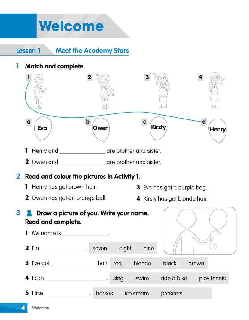 Nội dung trong Sách Academy Stars Workbook 2 được xây dựng để đồng bộ hoàn toàn với Pupil’s Book 2, tập trung vào bốn kỹ năng ngôn ngữ cơ bản: nghe, nói, đọc, viết. Khối lượng bài tập được phân bổ hợp lý, từ việc luyện từ vựng, củng cố ngữ pháp, đến luyện viết câu và đoạn văn ngắn, giúp học sinh hình thành thói quen vận dụng kiến thức ngay lập tức.