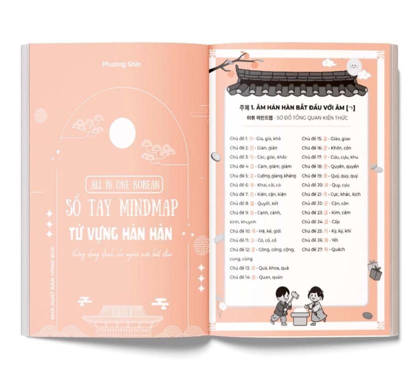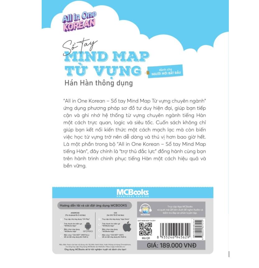 All In One Korean – Sổ Tay Mind Map Từ Vựng Hán Hàn Thông Dụng là một tài liệu đặc biệt dành cho người học tiếng Hàn muốn mở rộng vốn từ một cách khoa học và hiệu quả. Không giống như những cuốn từ điển Hán Hàn khô khan, cuốn sổ tay này áp dụng phương pháp học Mind Map (sơ đồ tư duy) để kết nối, hệ thống hóa và khắc sâu từ vựng Hán Hàn trong trí nhớ.