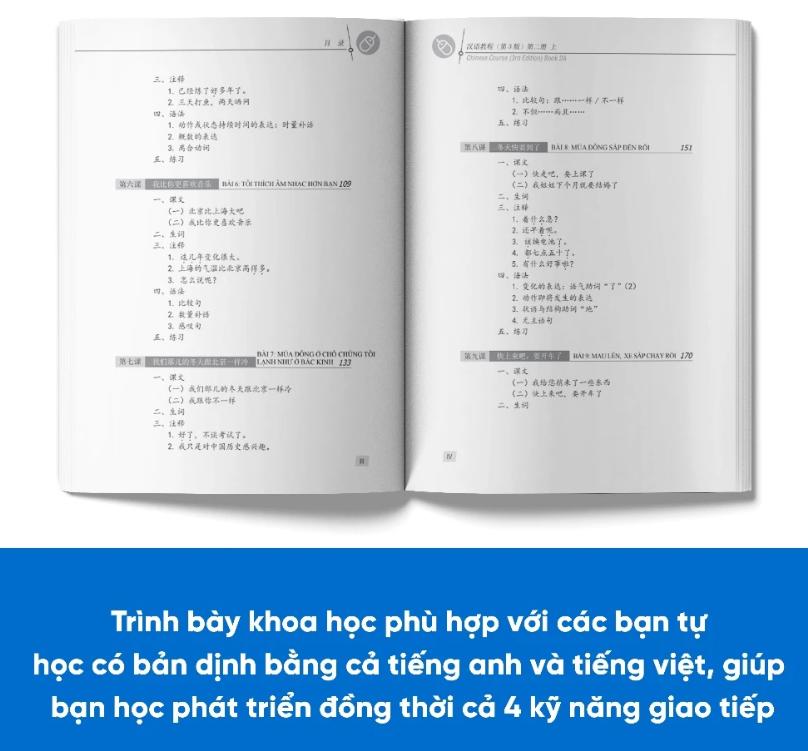 Giáo trình Hán Ngữ 3 – Tập 2 – Quyển Thượng (Phiên bản 3) gồm khoảng 12–15 bài học, được sắp xếp theo thứ tự khoa học, nâng dần độ khó qua từng bài.