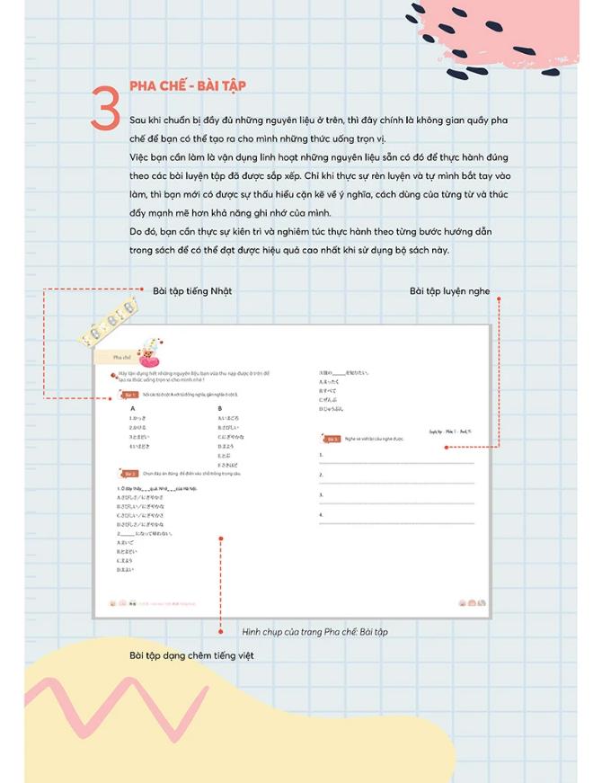 Điểm mạnh của Sách Mikkusu – Hút Trọn 1500 単語 Tiếng Nhật – Tập 2 nằm ở tính ứng dụng thực tế và khả năng khơi gợi phản xạ ngôn ngữ. Mỗi từ vựng đều được gắn với hình ảnh minh họa, ngữ cảnh cụ thể và phát âm chuẩn Tokyo qua file audio kèm theo, giúp người học tiếp cận toàn diện cả về thị giác, thính giác và ngữ dụng. Không chỉ dừng ở việc ghi nhớ, sách còn giúp người học “sử dụng” từ đúng cách. Hệ thống bài luyện tập cuối mỗi chương khuyến khích người học vận dụng vốn từ vào câu chuyện, đoạn hội thoại hoặc bài viết ngắn, nhờ đó hình thành tư duy ngôn ngữ tự nhiên.