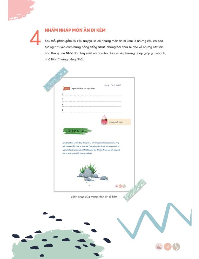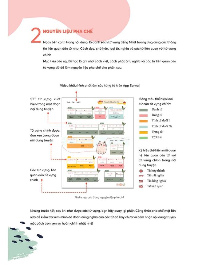 Điểm nổi bật khác là thiết kế song ngữ Nhật – Việt rõ ràng, cùng với phần chú giải ngữ pháp liên quan giúp người học hiểu sâu hơn cách vận dụng từ trong cấu trúc câu. Nhờ vậy, cuốn sách này không chỉ hữu ích với người tự học mà còn là tài liệu lý tưởng cho giáo viên sử dụng trong lớp học. Về mặt hình thức, bố cục sách tinh tế, trình bày sáng sủa, minh họa sinh động và phối màu dịu mắt giúp việc học trở nên dễ chịu và duy trì được hứng thú lâu dài.