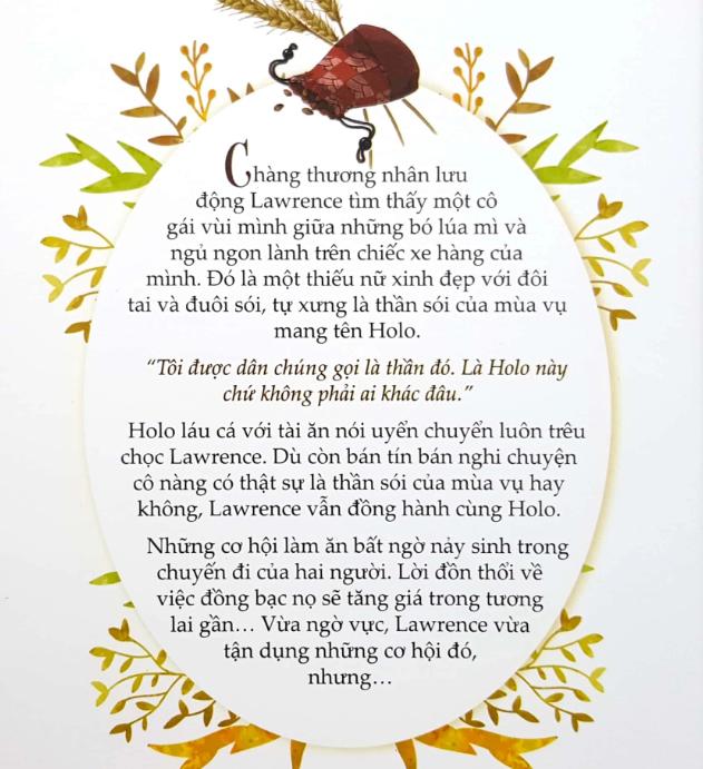 Tác phẩm đặt trong bối cảnh giả tưởng trung đại nhưng mang đậm dấu ấn kinh tế – thương nhân – và một thần sói sống hàng trăm năm, Holo, cùng thương nhân lưu động Lawrence. Chính sự pha trộn giữa thương vụ, hành trình du lịch, khảo sát tài chính và cảm xúc giữa con người với một sinh vật huyền thoại đã tạo nên sức thu hút đặc biệt. Trong bản tiếng Việt, tập 1 đưa độc giả vào không gian khởi động cuộc phiêu lưu: gặp gỡ Holo, bắt đầu hợp tác cùng Lawrence, đặt chân vào thương hội, trải nghiệm đổi tiền, thương vụ, và đặt ra câu hỏi lớn hơn về chọn lựa, tự do và danh phận.
